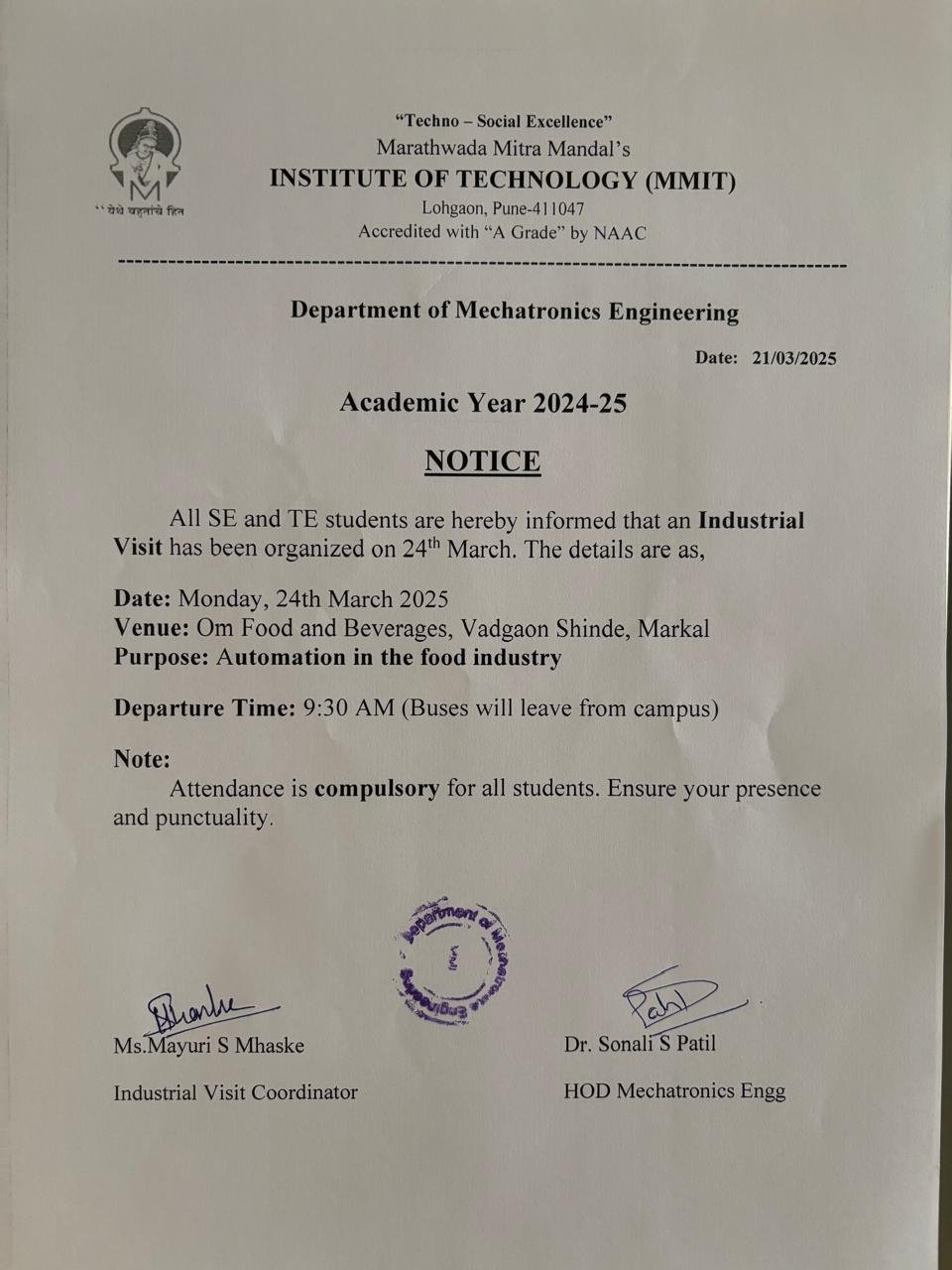 Industrial Visit Notice 2024-25