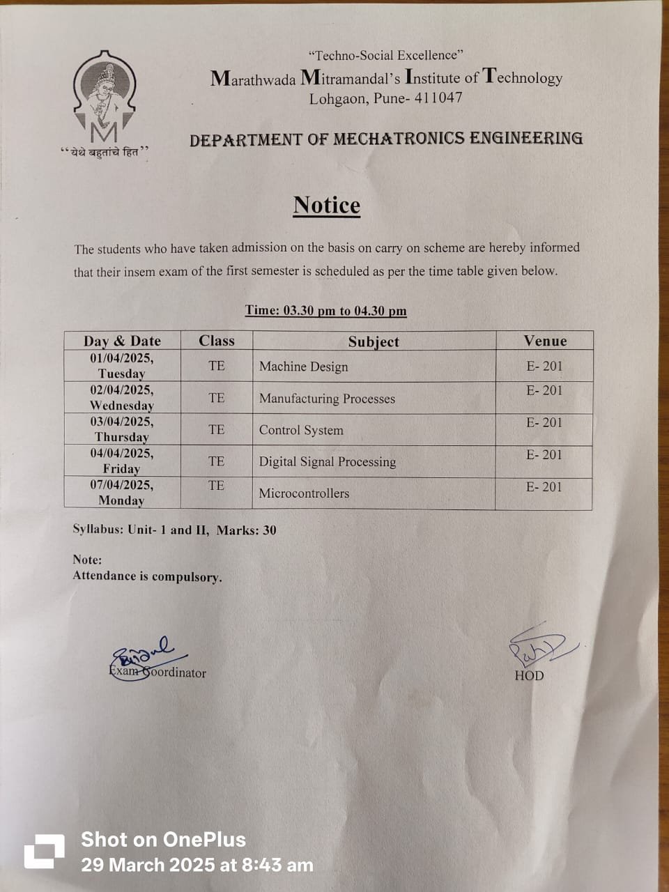 Insem Exam Notice